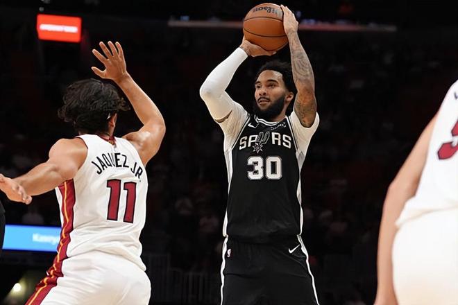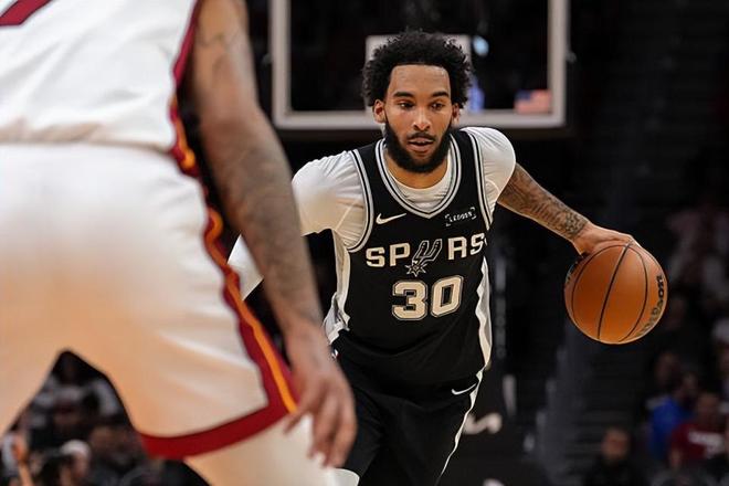 本场比赛中,马刺的先发锋线球员朱利安-尚帕尼(Julian Champagnie)的表现算是令人喜忧参半。尚帕尼全场出场30分33秒,投篮6中1,三分线外4中0,得到了2分5篮板2助攻2抢断1盖帽的数据,还有1次失误和1次犯规,正负值则是达到了全场最高的+24。作为一名投手,尚帕尼在进攻端的效率并不理想,他的得分能力和投射能力完全没有发挥出来。尚帕尼进攻端的表现实在是乏善可陈,他并没有帮助球队做到拉开空间。不过另一方面,尚帕尼在防守端的表现也是相当突出的,他也是有着相当不错的防守效率,他的个人防守能力相当不错并且给对手制造了不小的麻烦。尚帕尼在场上时球队的局面也是相当不错的,这也能够体现在他超高的正负值上。虽然数据不太出彩,虽然进攻效率糟糕,但是尚帕尼还是起到了自己的作用的,他也是为球队的这场胜利做出了自己的贡献。